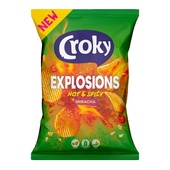 kies voor extra krokante chips met pittige srirachasmaak, gemaakt om uit de zak te delen tijdens een feestje of game-avond