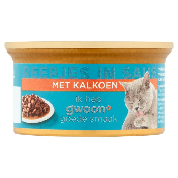 g'woon kattenvoer premium, reepjes kalkoen in een lekkere saus