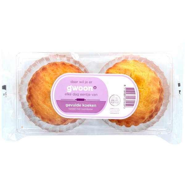 - een heerlijke roomboter koek gevuld met banketspijsvulling en amandeldecoratie