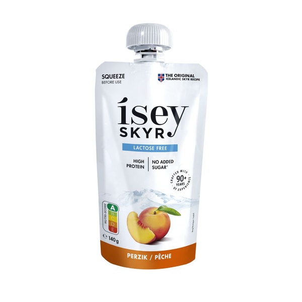 Proef de kracht van Ijsland met Isey Skyr perzik pouch!
