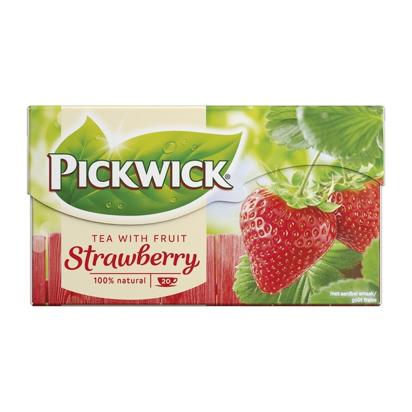 Pickwick aardbeienthee is een frisse, fruitige thee met een heerlijke aardbeiensmaak, voor fans van zoete zachtheid