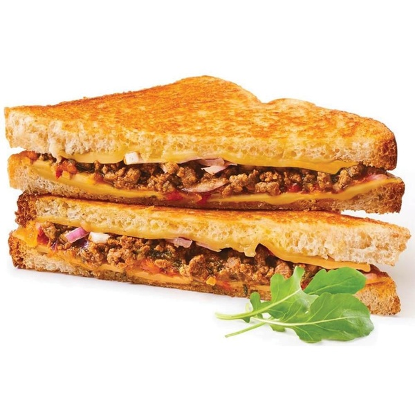 wit brood, jong belegen kaas, tacosalsa, gekruid gehakt, chimichurri